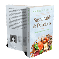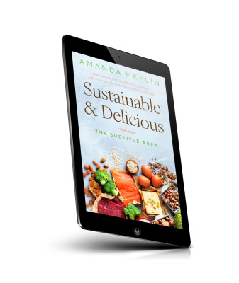 “A variety of fresh foods like salmon, beef, eggs, nuts, and greens surrounding a book cover with a minimalist design and greenery accents.”