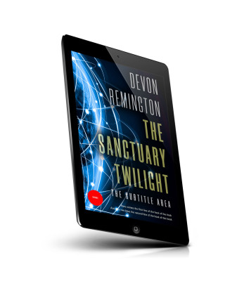 “A book cover depicting Earth with interconnected lights, featuring the title "The Sanctuary Twilight" and the author's name, Devon Remington.”