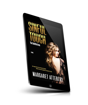 “A woman with wavy blonde hair in a backless dress looks over her shoulder against a dark background. The title "Sinful Touch" is prominent.”