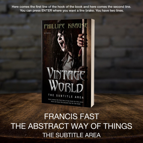 This book cover has 2 lines for the title, 1 line for the subtitle, 1 line for the author, 2 lines for the hook, and finally 1 line for the genre.