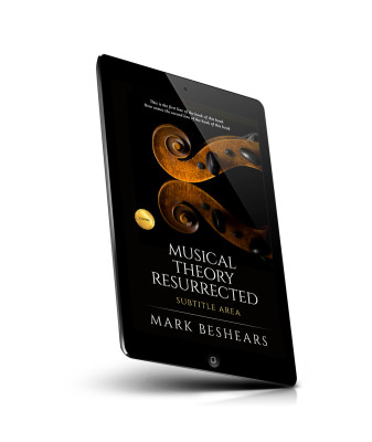 “A book cover with a violin scroll, title "Musical Theory Resurrected," and author Mark Beshears.”