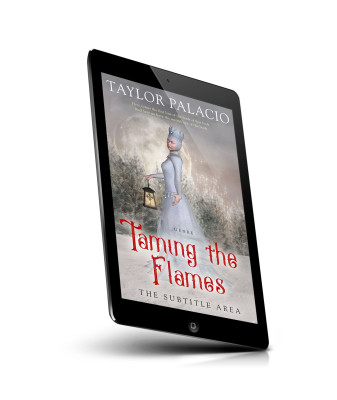 “A fantasy book cover featuring a woman in a silver dress and crown holding a lantern, with a snowy, moonlit forest background.”