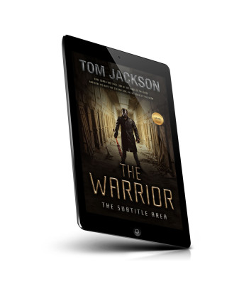 “A masked figure in a dark, ominous hallway holding a spiked weapon, with the text "The Warrior" prominently displayed below.”