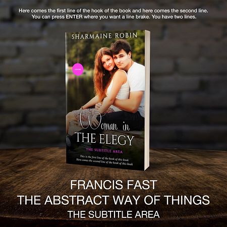 This book cover has 2 lines for the title, 1 line for the subtitle, 1 line for the author, 2 lines for the hook, and finally 1 line for the genre.