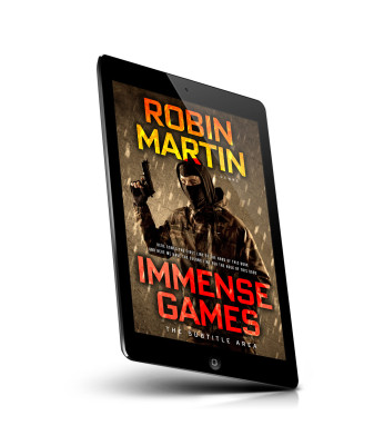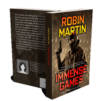“A hooded, masked figure holds a gun against a gritty, stormy background on a dramatic book cover.”