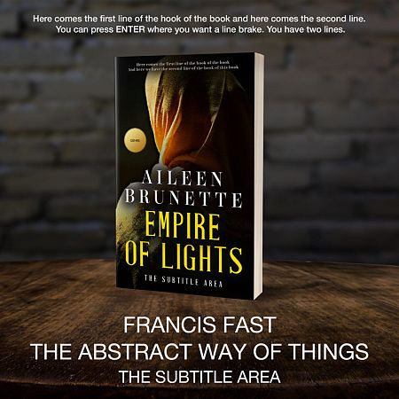 This book cover has 2 lines for the title, 1 line for the subtitle, 2 lines for the author, 2 lines for the hook, and finally 1 line for the genre.