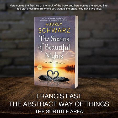 Other keywords revelant to this premade cover are floating, birds, aquatic, nature scene, swans, tranquil water, waterfowl, aquatic birds, swans swimming, lake serenity, bird pair, elegant swans, freshwater wildlife, graceful couple, floating duo.