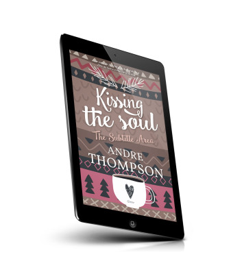“A patterned book cover with geometric designs and a cup illustration, featuring the title "Kissing the Soul" by Andre Thompson.”