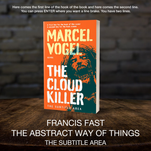 This book cover has 3 lines for the title, 1 line for the subtitle, 2 lines for the author, 2 lines for the hook, and finally 1 line for the genre.