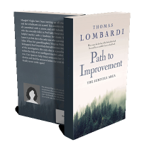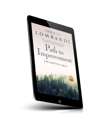 “Book cover with a forest scene at the bottom and a white background at the top. Title: "Path to Improvement."”