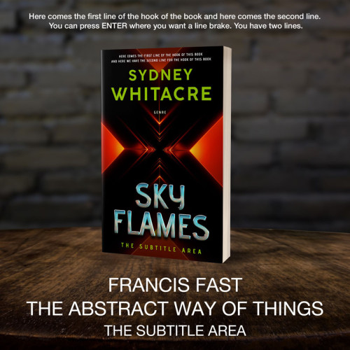 This book cover has 2 lines for the title, 1 line for the subtitle, 2 lines for the author, 2 lines for the hook, and finally 1 line for the genre.