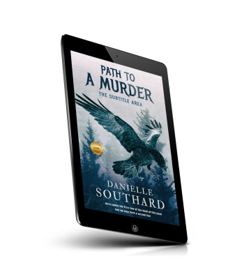 “A dark, ominous cover features a large raven in flight against a forest backdrop, evoking a suspenseful and mysterious mood.”
