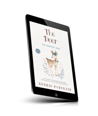 “A book cover with an illustrated deer surrounded by branches and leaves. The background is textured and light-colored.”