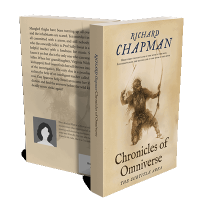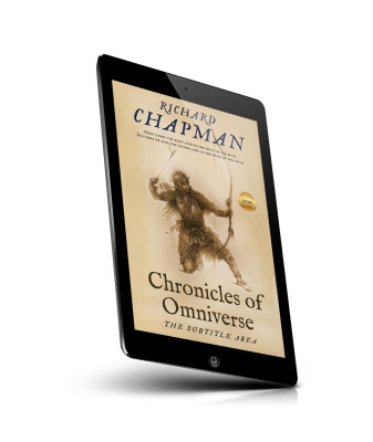 “An illustration of a warrior holding a bow and arrow on the cover of a book titled "Chronicles of Omniverse."”