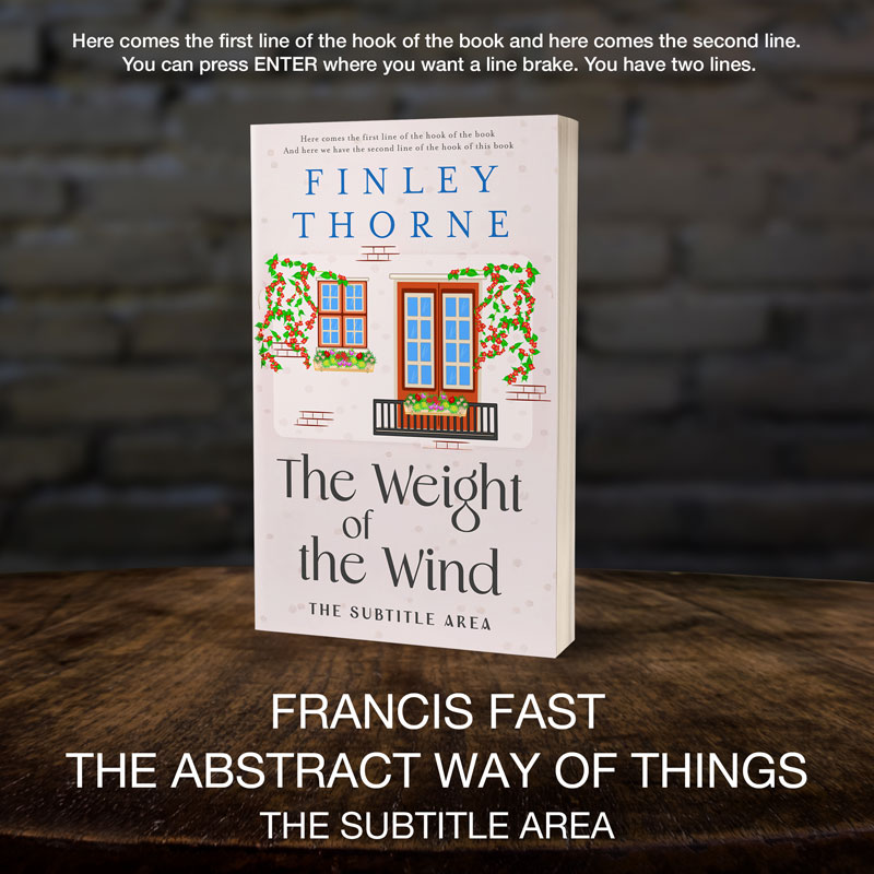 This book cover has 3 lines for the title, 1 line for the subtitle, 2 lines for the author, 2 lines for the hook.