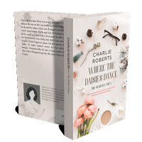 “A book cover with flowers, glasses, and a coffee cup placed on a white surface, creating a delicate, aesthetically pleasing arrangement.”