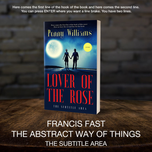 This book cover has 2 lines for the title, 1 line for the subtitle, 1 line for the author, 2 lines for the hook, and finally 1 line for the genre.