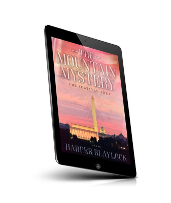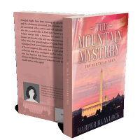 “A book cover featuring the Washington Monument at sunset. Title: "The Mountain Mystery," author: Harper Blaylock.”