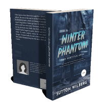 “A mysterious figure stands in front of a large, dimly lit window with the words "Winter Phantom" prominently displayed.”
