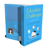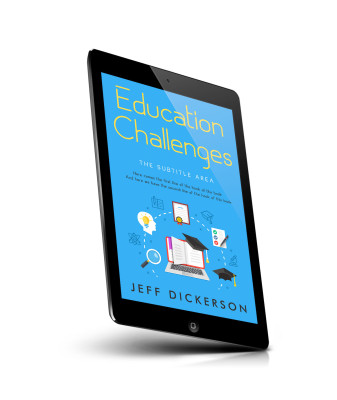 “A book cover with education-themed illustrations including a lightbulb, diploma, books, and graduation caps on a blue background.”