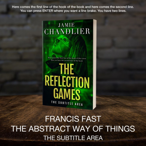 This book cover has 3 lines for the title, 1 line for the subtitle, 2 lines for the author, 2 lines for the hook, and finally 1 line for the genre.