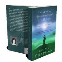 “A book cover featuring a meditative silhouette against a serene landscape with a gradient green-blue background.”