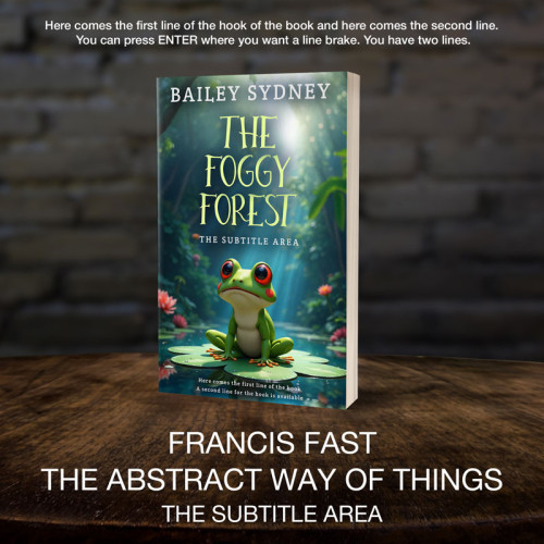 Tags: frog, lily pad, sunlight, forest, nature, cartoon, big eyes, green, whimsical, pond, serene, vibrant, cute, flora, fauna, tranquility, enchanting, magical, peaceful, premade cover, book cover design, self-publishing, ebook cover, print ready