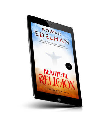 “A book cover with a figure with outstretched arms against a cloudy sky and the title "Beautiful Religion" in bold red letters.”