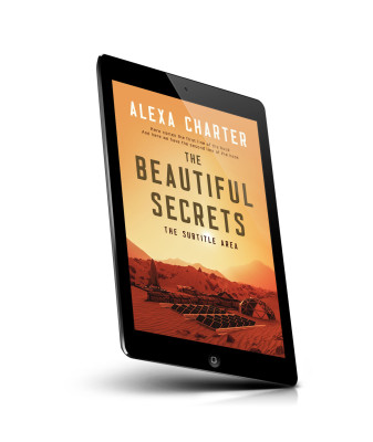 “A sci-fi book cover depicts a Mars-like colony with domes and rockets under an orange sky at sunset.”