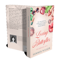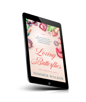 “A book cover with makeup items, seashells, shoes, and leaves around the edges, featuring the title "Loving Butterflies" by Summer Walker.”