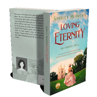 “A woman in a flowing dress stands on grass, facing a white cathedral. Trees and blue sky form the backdrop.”