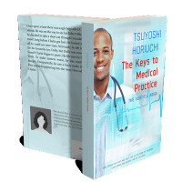 “A man with a stethoscope smiles on a book cover titled "The Keys to Medical Practice." The background includes a heartbeat line.”