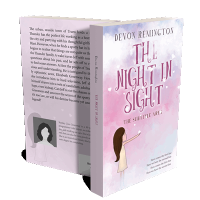 “A girl in a white dress reaches out to falling hearts against a pastel-colored background with a book title prominently displayed above.”