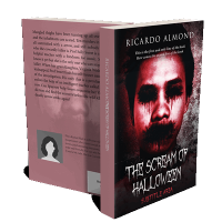 “A man with dark, eerie makeup stares forward against a creepy red background, promoting a horror theme for "The Scream of Halloween."”