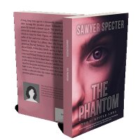 “A close-up of a woman's face with purple hues, focusing on her eye, under the title "The Phantom."”