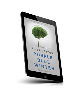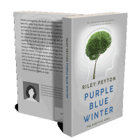“A tree inside the silhouette of a head with a gradient background. The cover is for a book titled "Purple Blue Winter".”