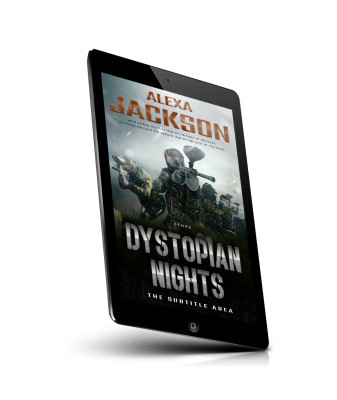 “Three masked, armed soldiers in tactical gear, aiming paintball guns in an intense, foggy environment. Book cover with dystopian theme.”