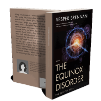 “A sci-fi book cover featuring a cosmic design with glowing gears and light effects, centered around a vibrant explosion of colors.”