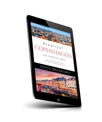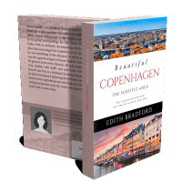 “Book cover featuring colorful Copenhagen cityscapes, with picturesque buildings and waterways. Author: Edith Bradford. Genre indicated on the side.”