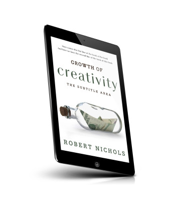 “A glass bottle containing folded dollar bills is placed on a white background with the title "Growth of Creativity" above it.”