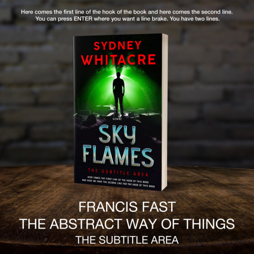 This book cover has 2 lines for the title, 1 line for the subtitle, 2 lines for the author, 2 lines for the hook, and finally 1 line for the genre.