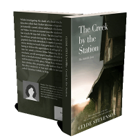 “An old wooden building with a sloped roof stands beside trees, under a cloudy sky. A seal on the image indicates it's a novel.”