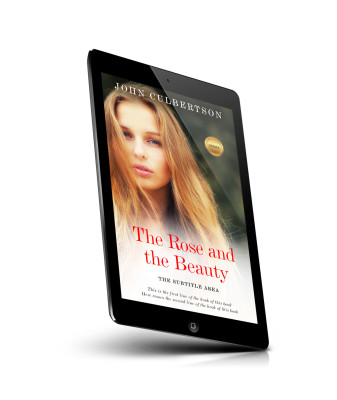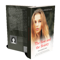 “A close-up of a woman with long hair on a book cover titled "The Rose and the Beauty."”