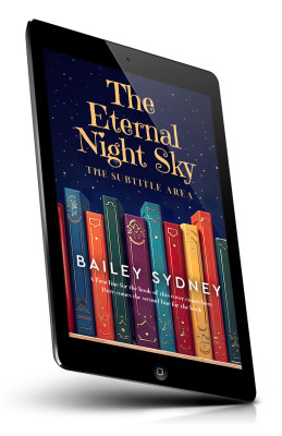 “Colorful books with ornate spines stand against a starry night sky background.”