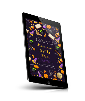 “Halloween-themed book cover with witch hats, pumpkins, broomsticks, cauldrons, and potions on a dark background.”