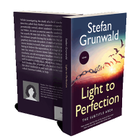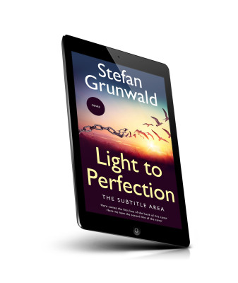 “Chained sunset scene with birds flying, featuring "Light to Perfection" prominently.”