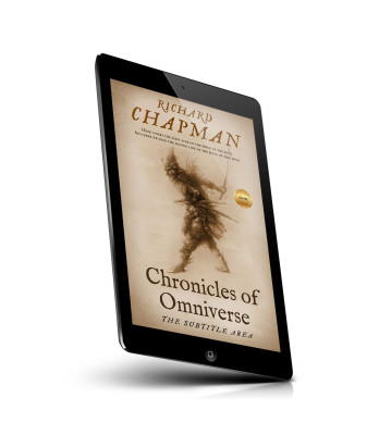“A warrior in motion with a spear and shield on a textured background, next to a golden genre badge.”