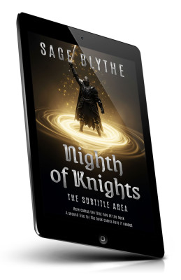 “A knight in dark armor stands with a raised sword, surrounded by a glowing circle.”