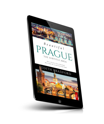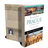 “Book cover featuring picturesque scenes of Prague with city landmarks and river views. Author's name at the bottom.”