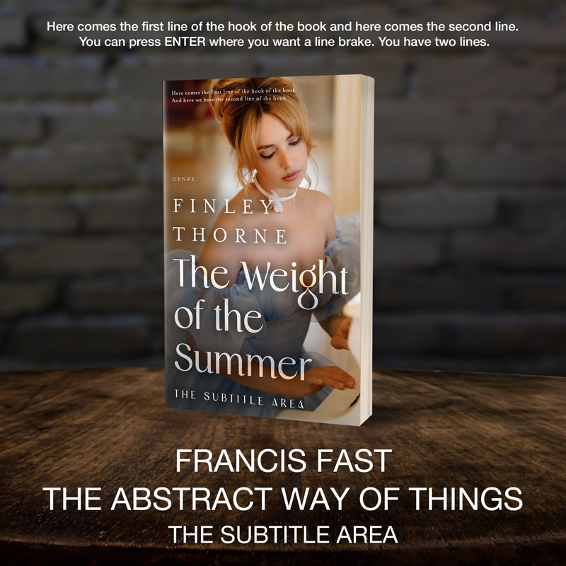 This book cover has 3 lines for the title, 1 line for the subtitle, 2 lines for the author, 2 lines for the hook, and finally 1 line for the genre.